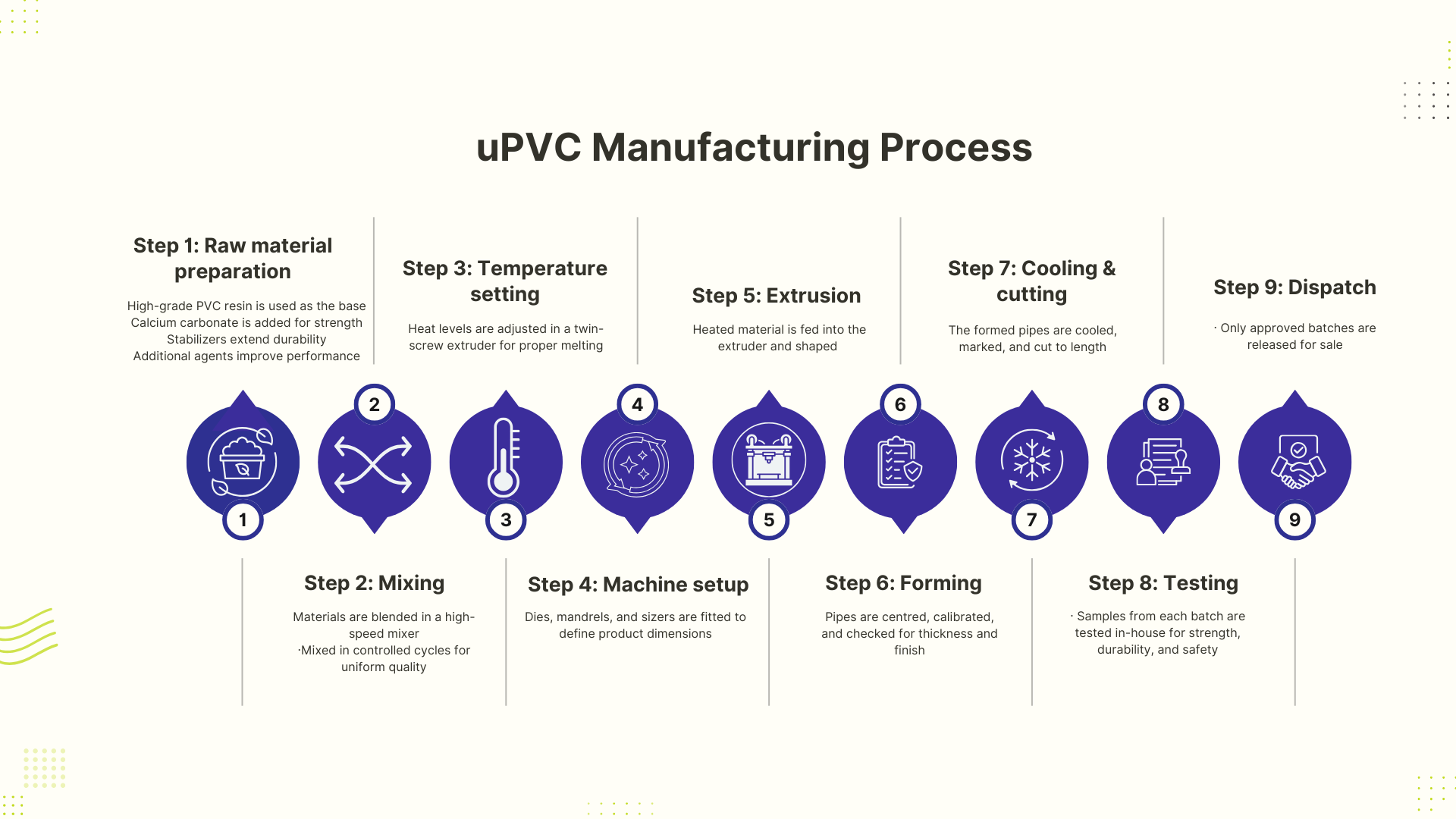Created with the uPVC extrusion process, forming long, hollow tubes that can be cut as required.